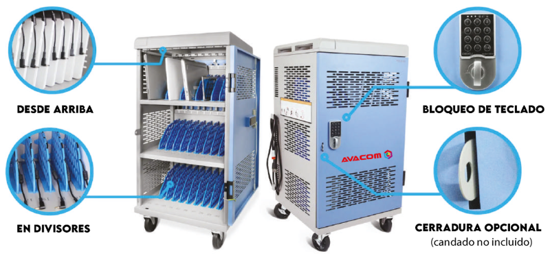 SITE-AVACOM Carro de Carga Go 20 está diseñado para ofrecer una solución segura, organizada y eficiente para el almacenamiento, transporte y carga de hasta20 laptops o tabletas de hasta 15.6 pulgadas. Fabricado en acero laminado en frío 100%, su estructura es robusta y resistente, mientras que los divisores interiores de plástico ABS removibles permiten una disposición flexible y ordenada de los dispositivos.